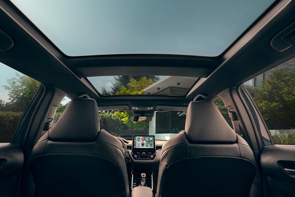 Plafonul panoramic le permite celor mici sa admire fiecare peisaj de pe traseu, oferind simultan mai multa luminozitate si vizibilitate in habitaclu. Cu materialele calitative, spatiul impresionant si eficienta de care da dovada, noua Corolla Cross se aliniaza in mod excelent cu asteptarile tale.
